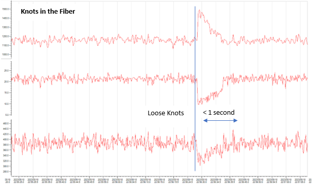 • Due to the very short-term nature of these loose knots (less than a second), it is exceptionally challenging for spot checks to capture such defects. Traditional lab testing involves pulling the last few meters of fiber, leaving knots further back in the package undetected.